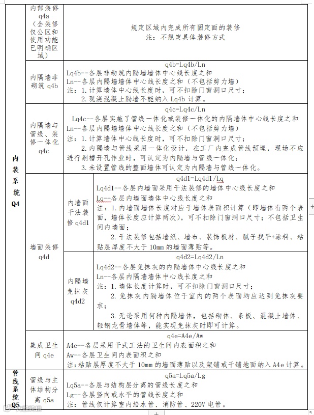 8.公共建筑室内或居住建筑套内实施全装修的情况下,当全装修表面积的60%及以上采用装配式装修方式完成,且实现管线与主体结构分离时,内装系统和管线系统的装配率均可直接按照满分计算。
