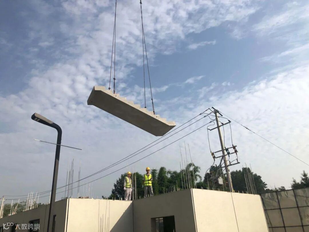 图为万兴绿建样品房预制楼梯吊装