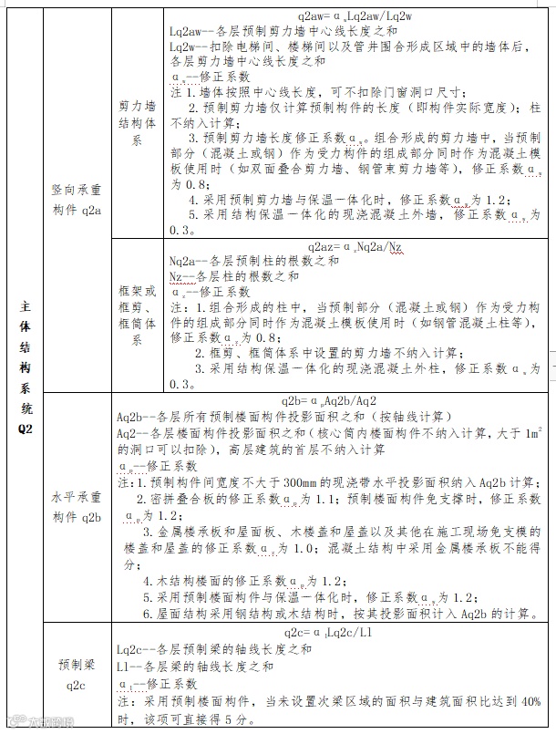 Q2──主体结构系统指标实际得分值;