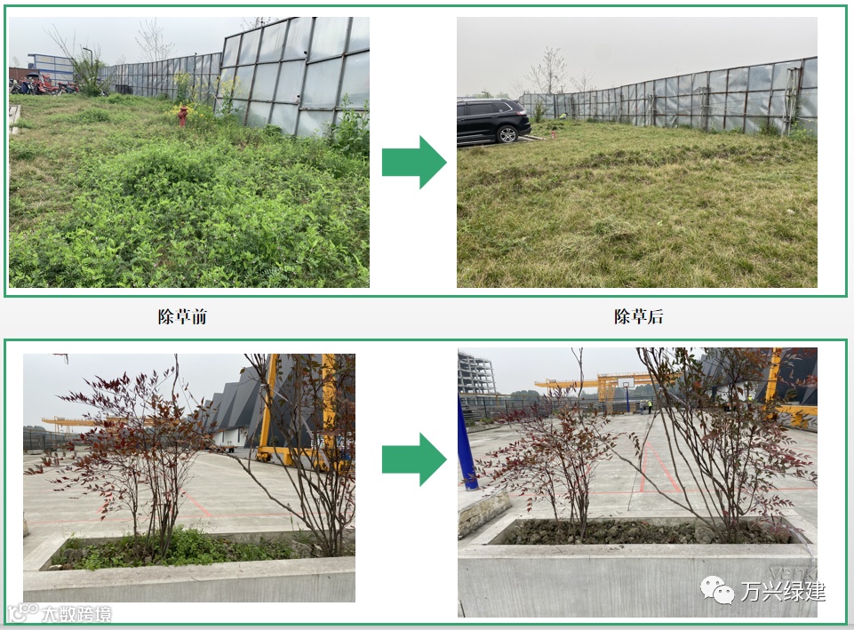 停车场后方野蛮生长的杂草,占领了原来的青青草坪