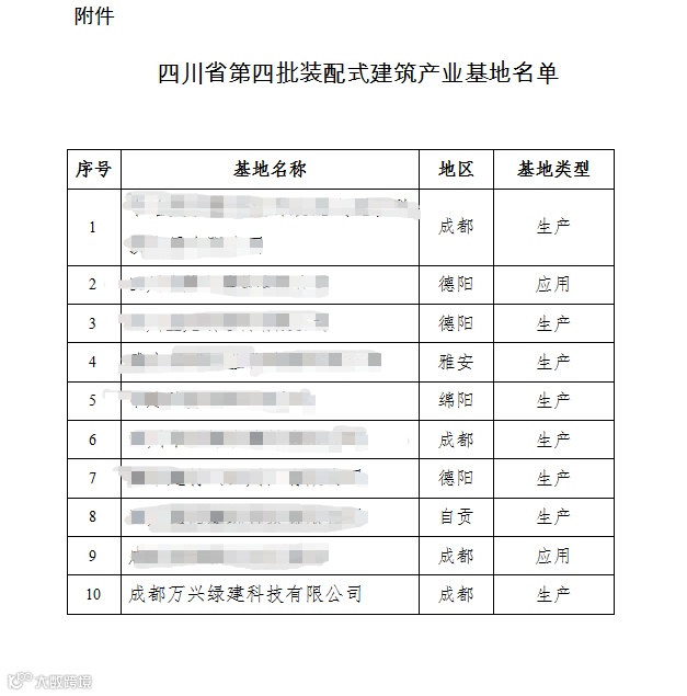 2020年12月15日,成都万兴绿建科技有限公司通过四川省装配式建筑产业基地认定及四川省第二批装配式建筑部品部件生产质量保障能力评估,并均在四川省住房和城乡建设厅网站予以公示。