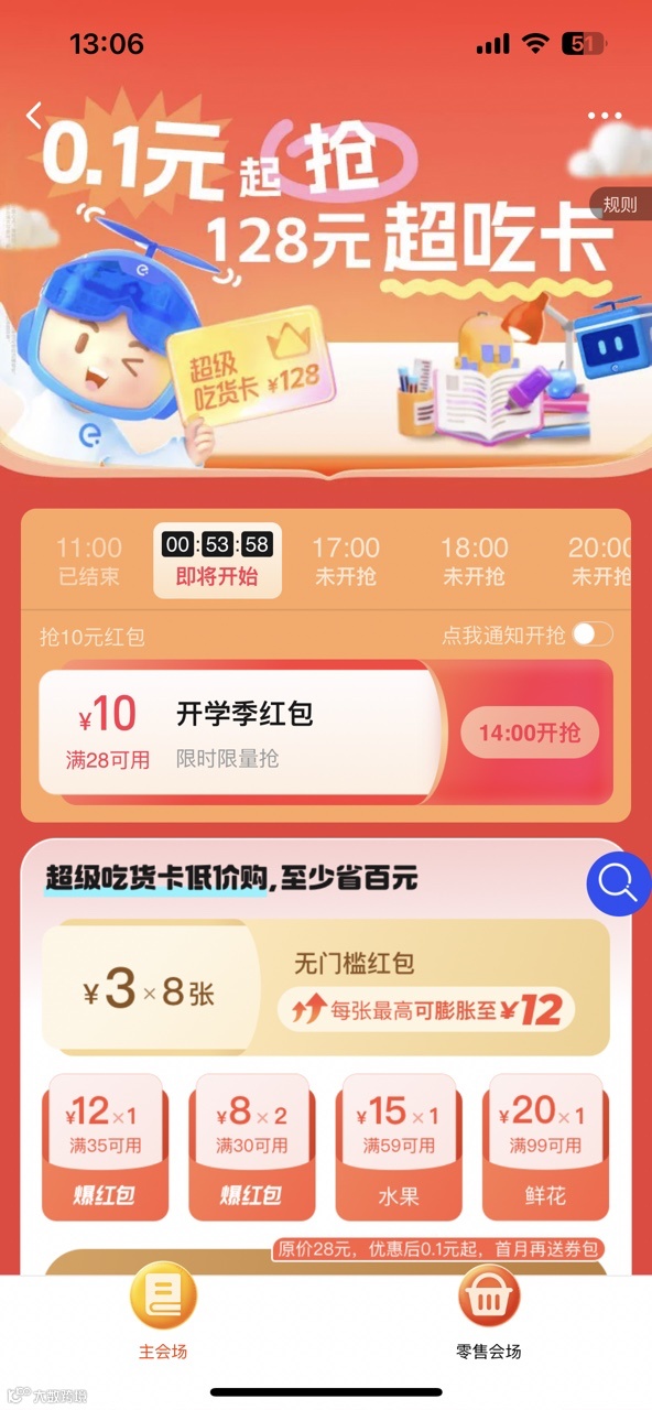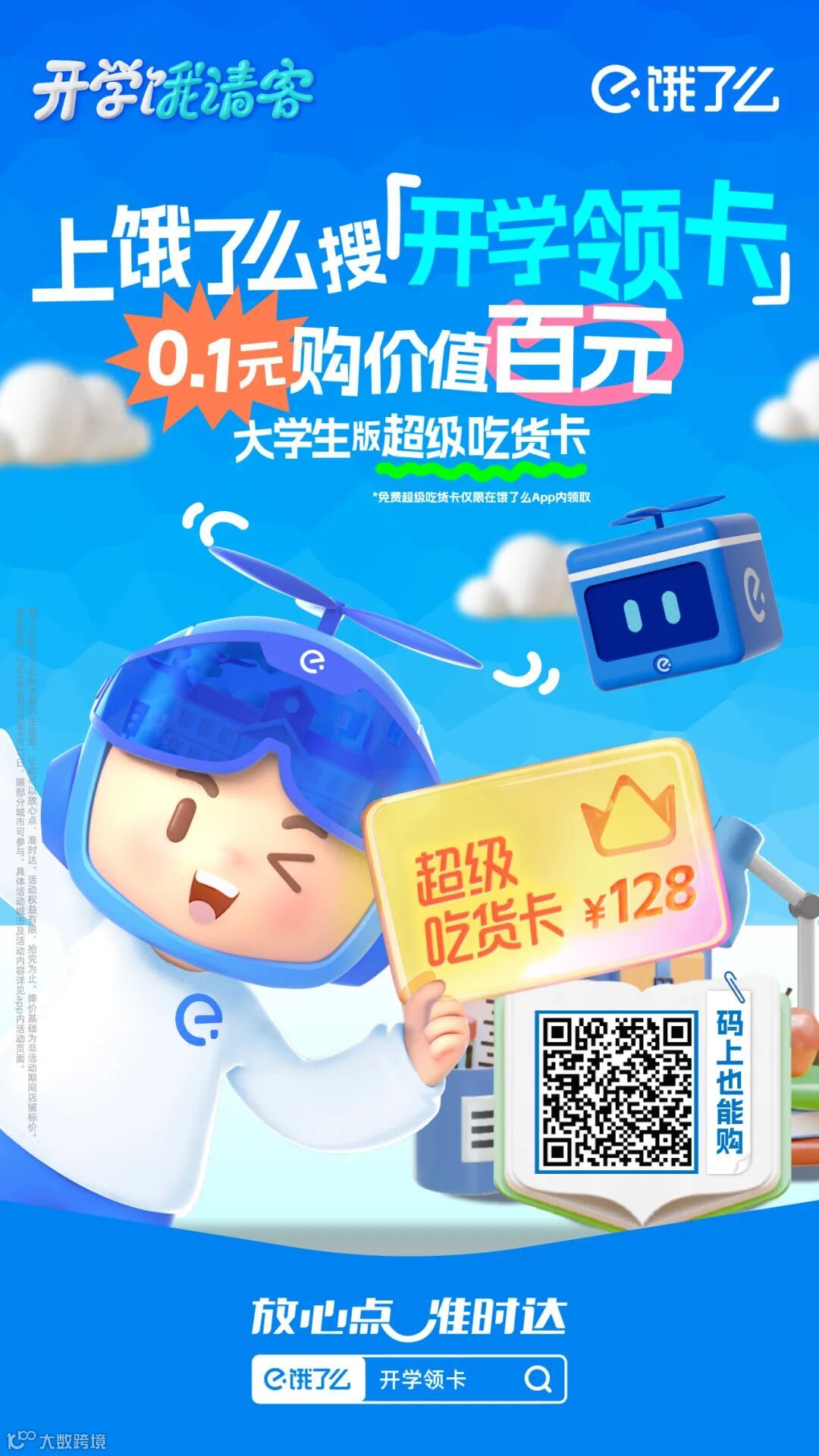 上饿了么搜索【开学领卡】即可参与活动
