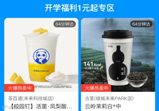 茶百道古茗等品牌单品,领券后享受1元起喝指定品牌奶茶饮品,活动时间为9月9日至9月15日,每人1份领完为止,具体领取链路参考文章全新体验!“随e达”数智校园生活服务平台正式上线,专属活动等你来参与!