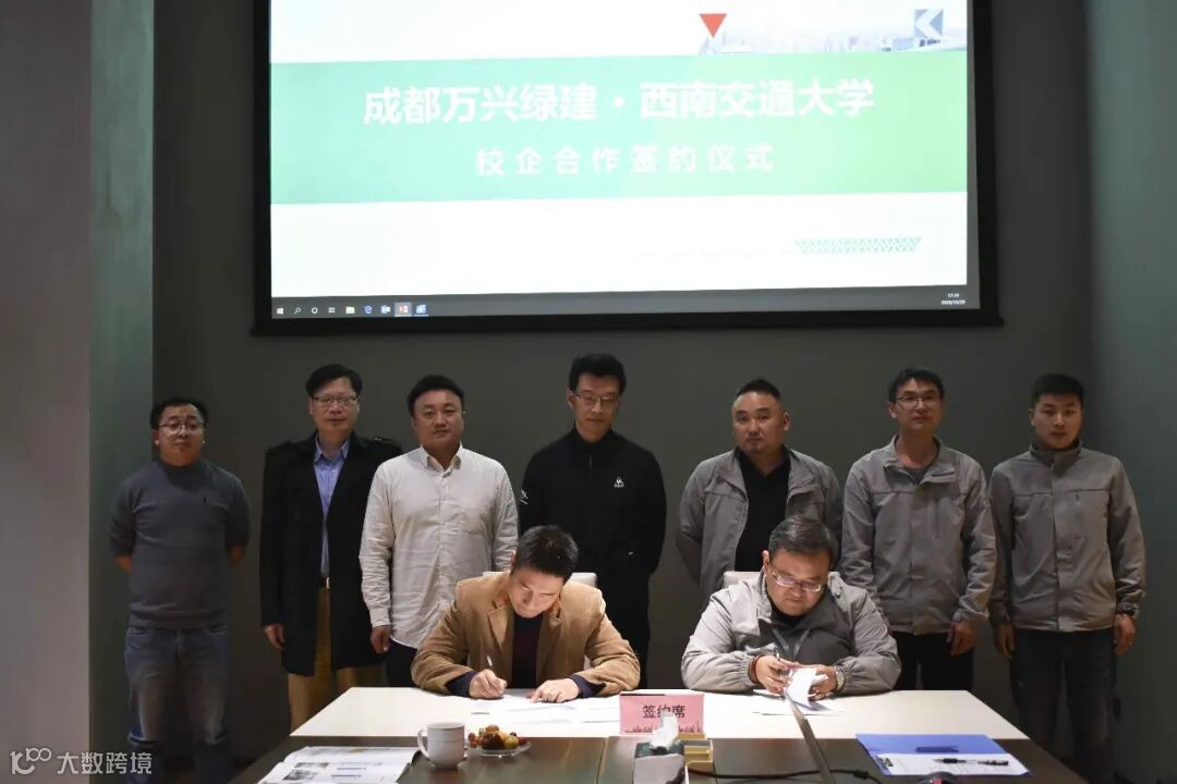 10月29日下午,成都万兴绿建科技有限公司(以下简称:万兴绿建)与西南交通大学校企合作签约仪式在万兴绿建建研中心一楼会议室顺利举行,并进行了“西南交通大学土木工程学院实习实践基地”揭牌。