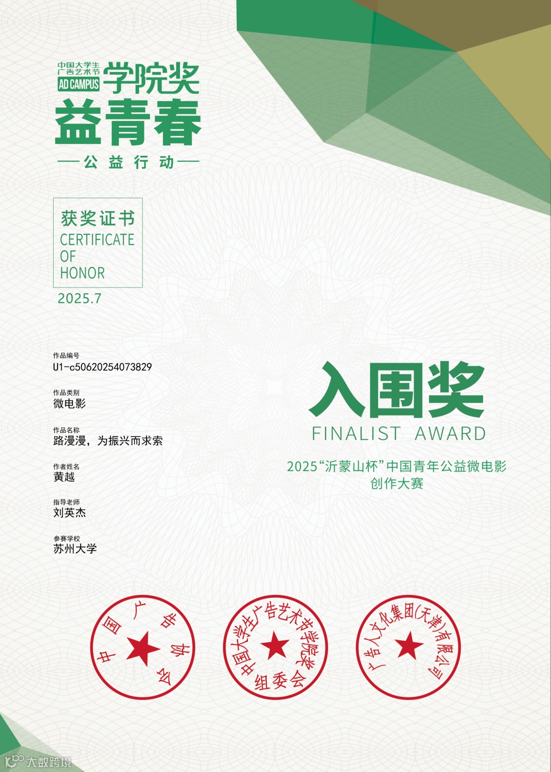 作为中国大学生广告艺术节学院奖核心公益赛道,“沂蒙山杯” 中国青年公益微电影创作大赛以 “用影像传递社会温度,以青春践行公益担当” 为宗旨,吸引全国高校学子聚焦公益主题创作。鲁南制药集团作为赛事重要支持方,始终坚守 “造福社会,创造美好生活” 的公益初心,为青年学子搭建 “创意 + 公益” 实践平台,这与浙江传媒学院 “培养兼具专业素养与社会责任感的传媒人才” 的育人目标高度契合,为学校参赛团队提供了优质实践载体。