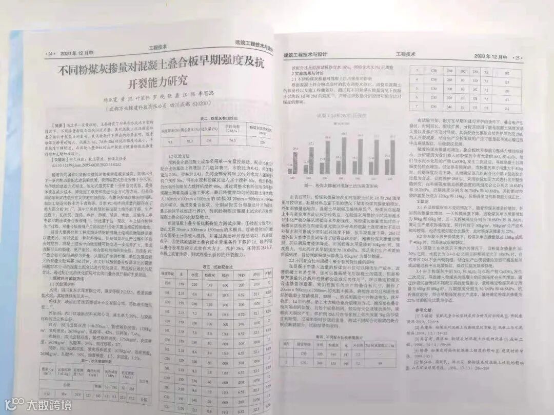 2020年12月,由万兴绿建试验室、搅拌站、生产管理和技术发展部门相关人员联合署名的论文《不同粉煤灰掺量对混凝土叠合板早期强度及抗开裂能力研究》在《建筑工程技术与设计》12期刊发表。