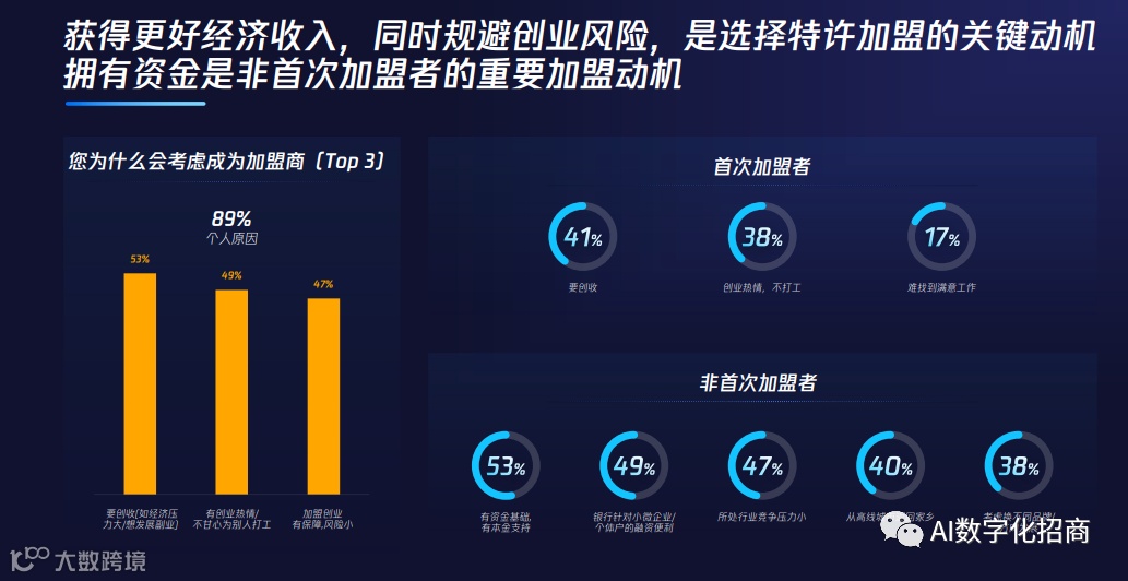 获得更好的经济收入,同时规避创业风险,是选择特许加盟的关键动机。拥有资金是非首次加盟者的重要加盟动机。