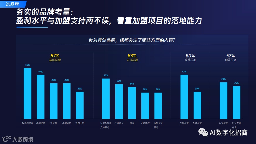 • 同时,加盟总部也需关注数字化时代下的品牌资产建设,通过线上营销建立品牌熟悉度、好感度、信任度,进而促进加盟决策的达成。