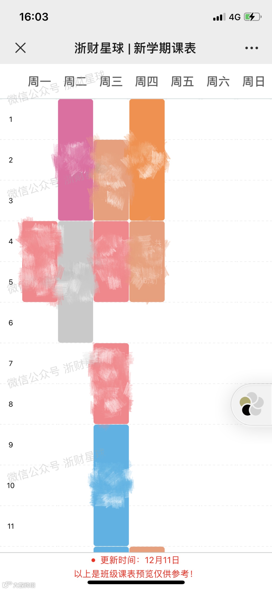 新学期课表陆续发布