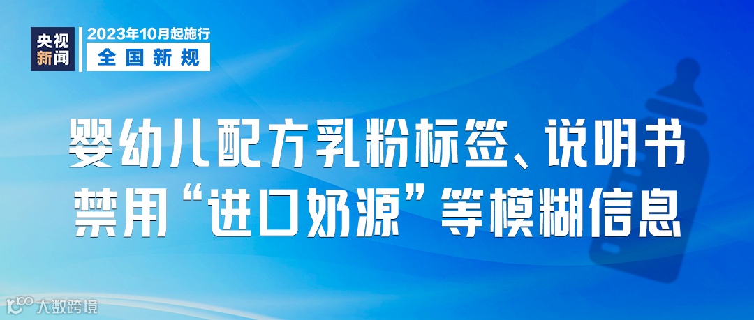修订后的《婴幼儿配方乳粉产品配方注册管理办法》10月1日起施行。明确标签、说明书不得使用“进口奶源”“源自国外牧场”“生态牧场”“进口原料”“原生态奶源”“无污染奶源”等模糊信息;不得使用婴儿和妇女的形象,“人乳化”“母乳化”或者近似术语表述。
