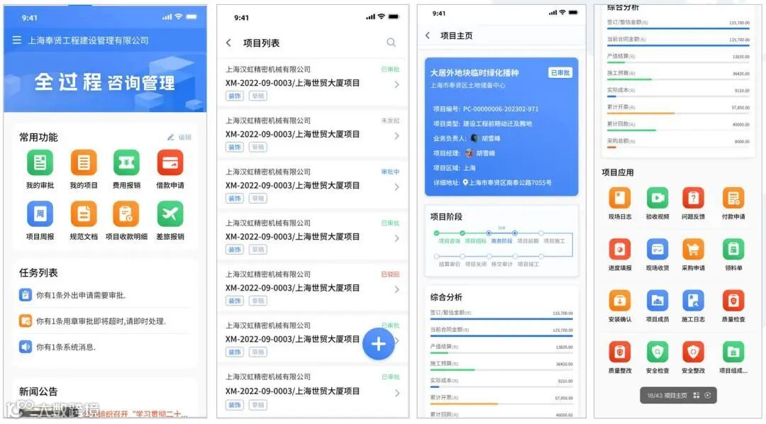 奉贤工程建设管理公司业务操作注重目标管理,程序规范,经过对多年项目建设管理经验的总结与改进,已建立起一套切实可行、行之有效的项目管理工作制度和工作流程以及绩效考核制度,项目管理工作目标明确,管理科学规范,并通过了ISO9001质量管理体系,并于2019年通过与首信软件合作,导入项目数字化管理平台,构建了企业规范的项目数字化管理体系,实现公司管理数字化、规范化、效率化,确保每个项目过程可控,从而实现既定的质量、安全和投资控制目标。