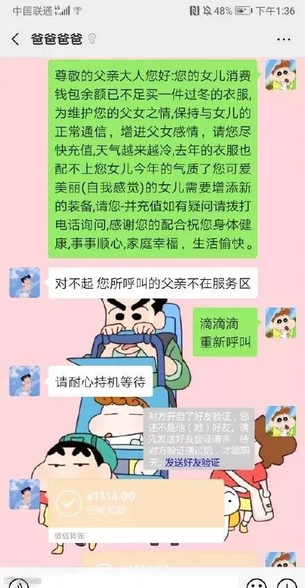 俺来了,俺爹每次打钱 开头 “你好”