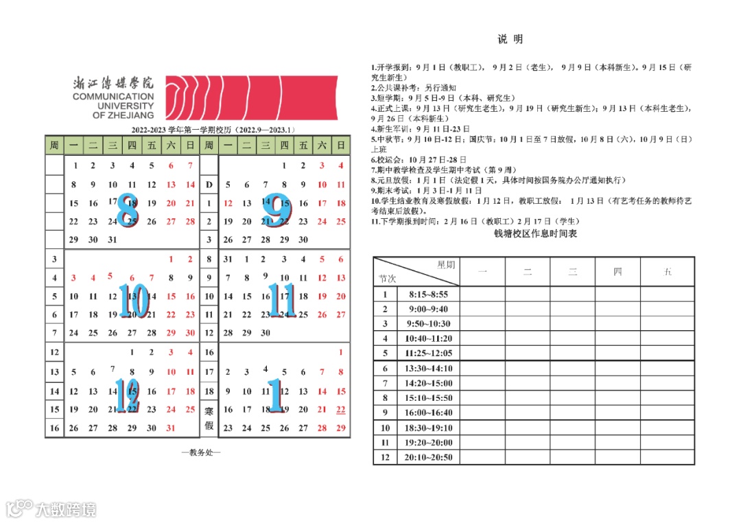 收藏!浙传2022-2023学年校历发布啦!