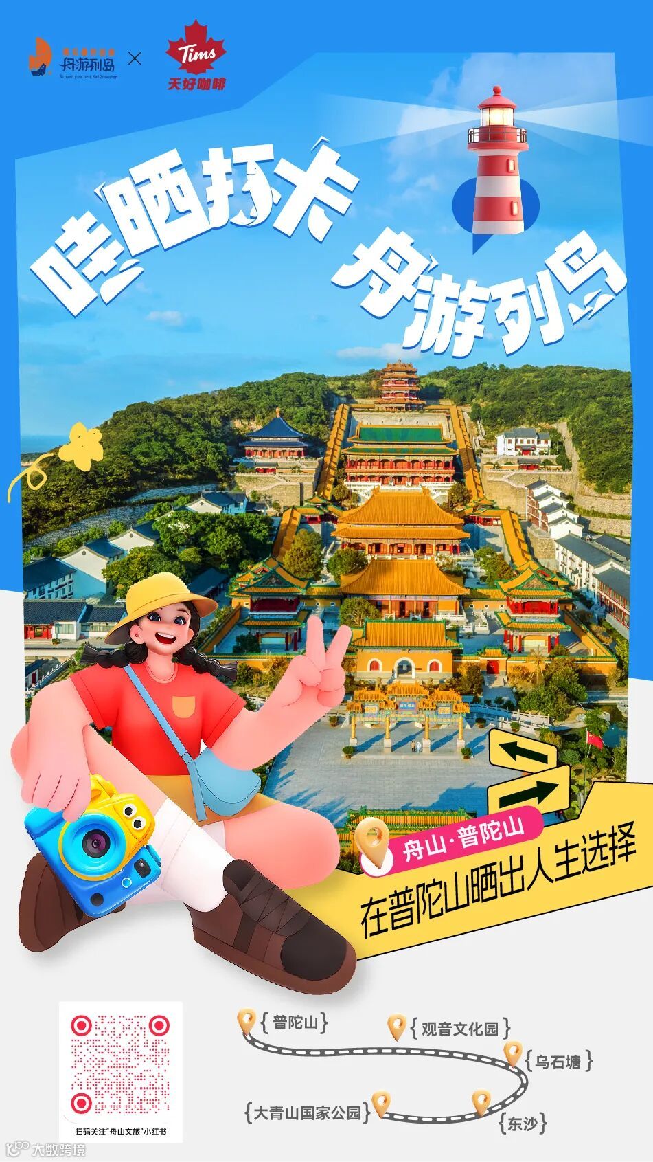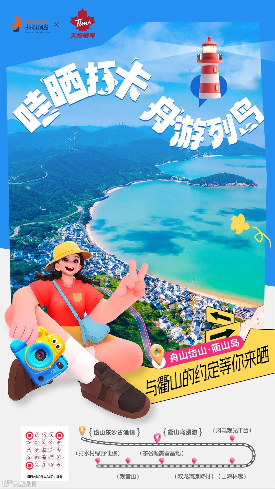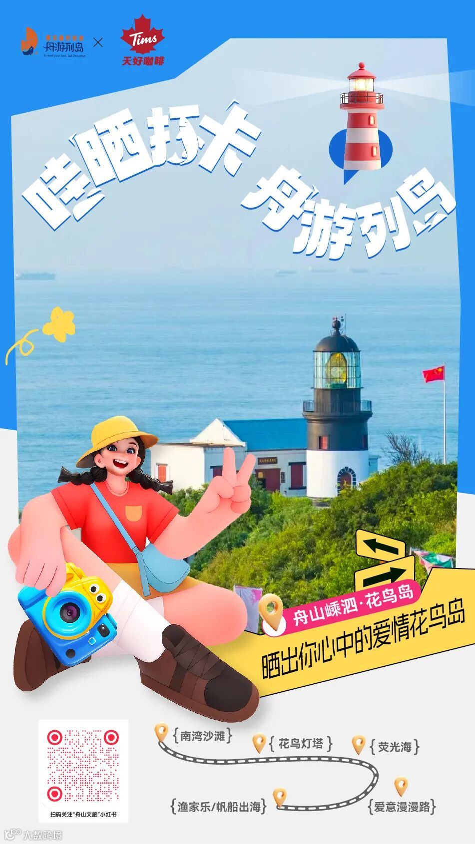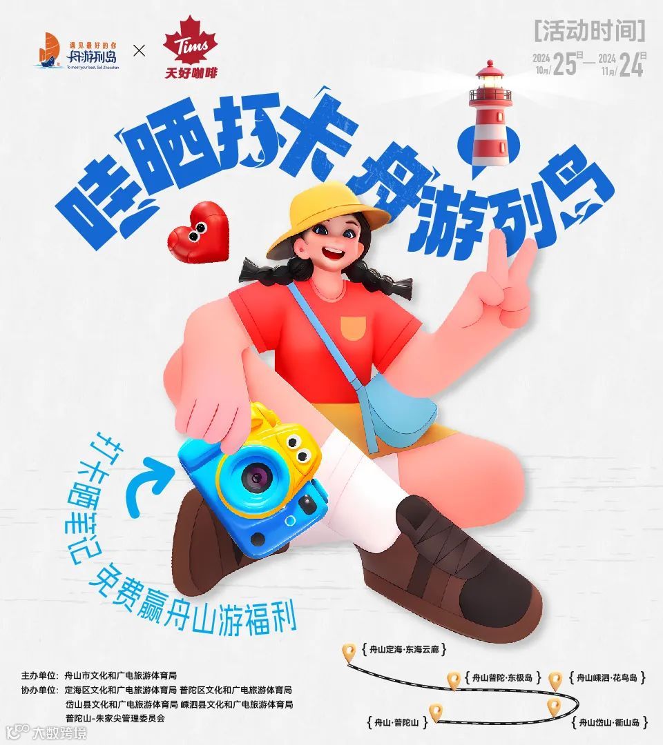 ②在抖音、小红书、微博等新媒体平台晒打卡照片/视频,必带话题词#哇晒打卡舟游列岛 #舟游列岛遇见最好的你#Tims;