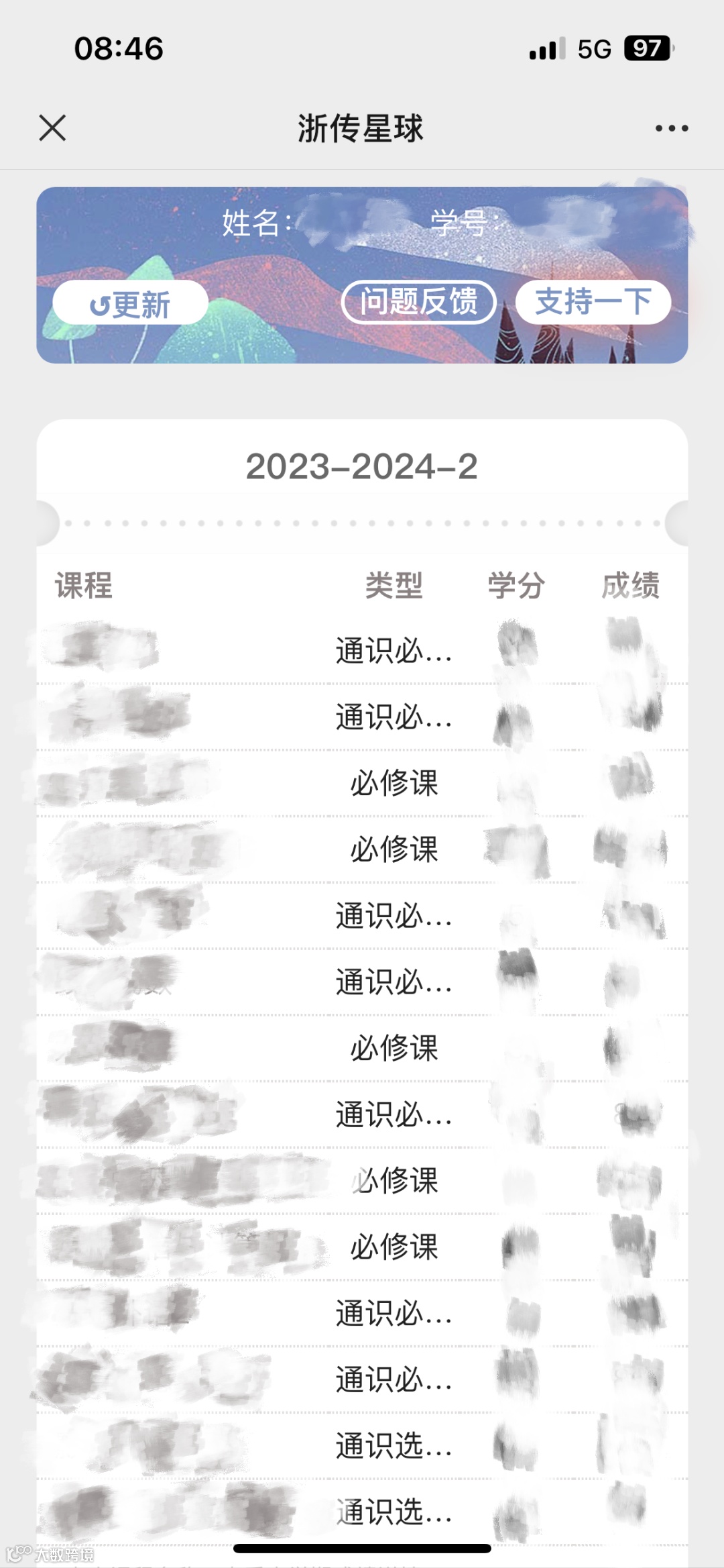 点击进入查成绩更新页面