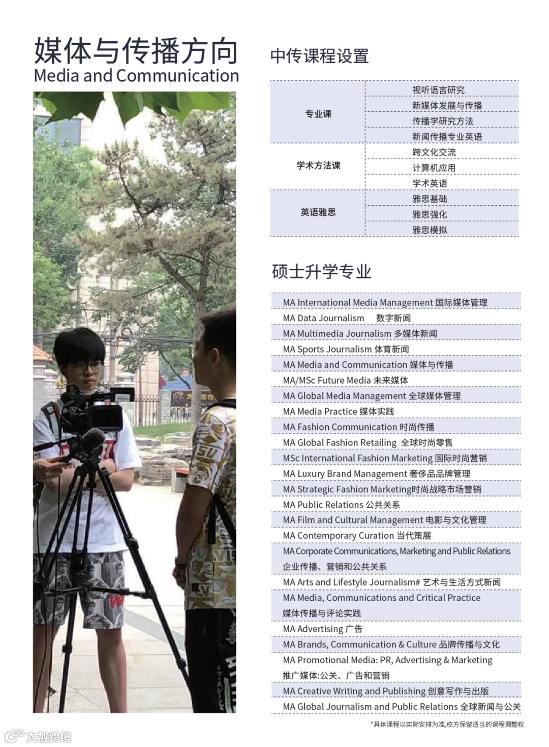项目具体了解可见中国传媒大学官网