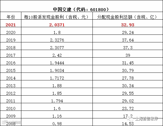 中国交建2021年度归属于公司股东的净利润为179.93亿元,同比增长11.03%。每股收益为 1.02元,拟每10股派现金股息约为 2.04元。现金分红的数额(含税)为 32.93亿,占合并报表中归属于上市公司普通股股东的净利润的20%。