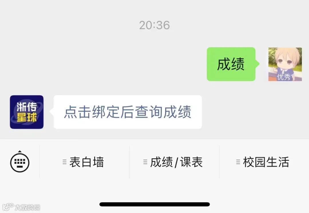 回复【成绩】进入一键查询功能