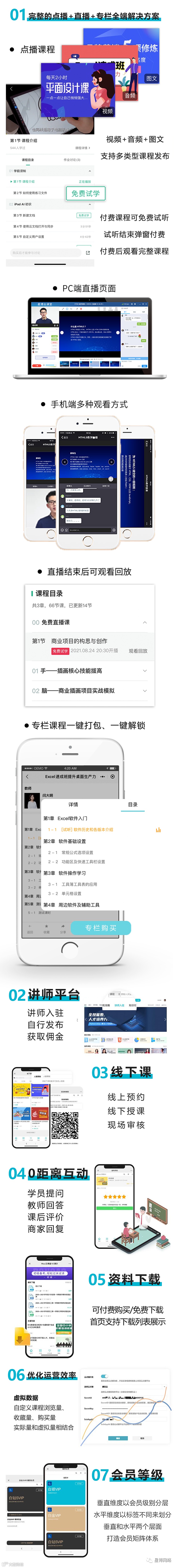 目标客户:知识付费、在线教育、企业内训等诸多场景。涵盖:k12教育、素质教育、成人教育、学历教育、留学教育、企业培训、知识付费网校运营者等等。