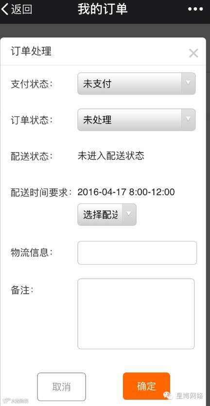 微网站商铺订单管理上线