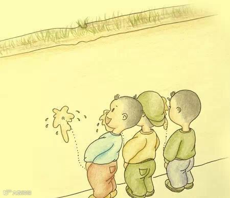 15.男孩子站成一排,看谁尿得更远。
