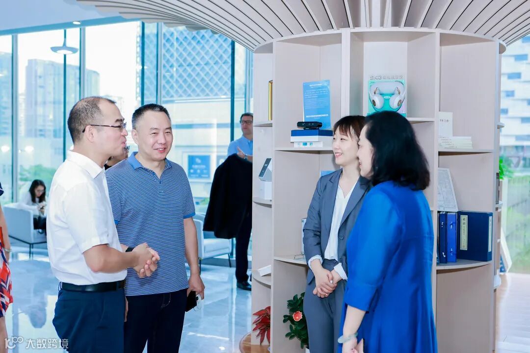 启动仪式结束后,大家一同参观了中心,在中心的辖区企业产品展区前驻足观看,展区集中展示了未来穿戴设备、喜茶周边伴手礼、飞亚达军工手表等产品,大家沟通交流,部分企业寻求合作。值得一提的是,该展示区是粤海街道为参与“粤企代言,海纳百川”企业产品展示计划的企业而设立,该计划旨在帮助辖区企业增加产品曝光度,加强行业交流及链接合作机会。