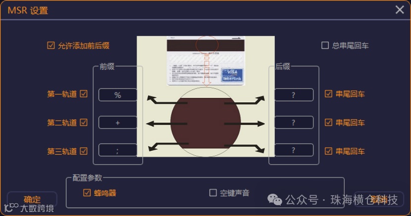 点击“MSR设置”按钮,将出现如下界面。操作该界面能设置各种磁条读卡器参数。