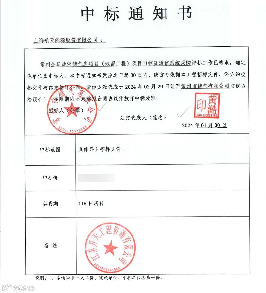 耕耘有时,收获已至。春之伊始,航天能源喜讯接踵而来。2024年1-2月,公司相继中标港华金坛盐穴储气库自控系统及调度中心升级改造项目、松阳港华赤寿门站自控及安防系统项目、常州金坛盐穴储气库(地面工程)自控及通信系统采购等项目,奏响新一年开拓进取的号角,开启节节高升的序幕。