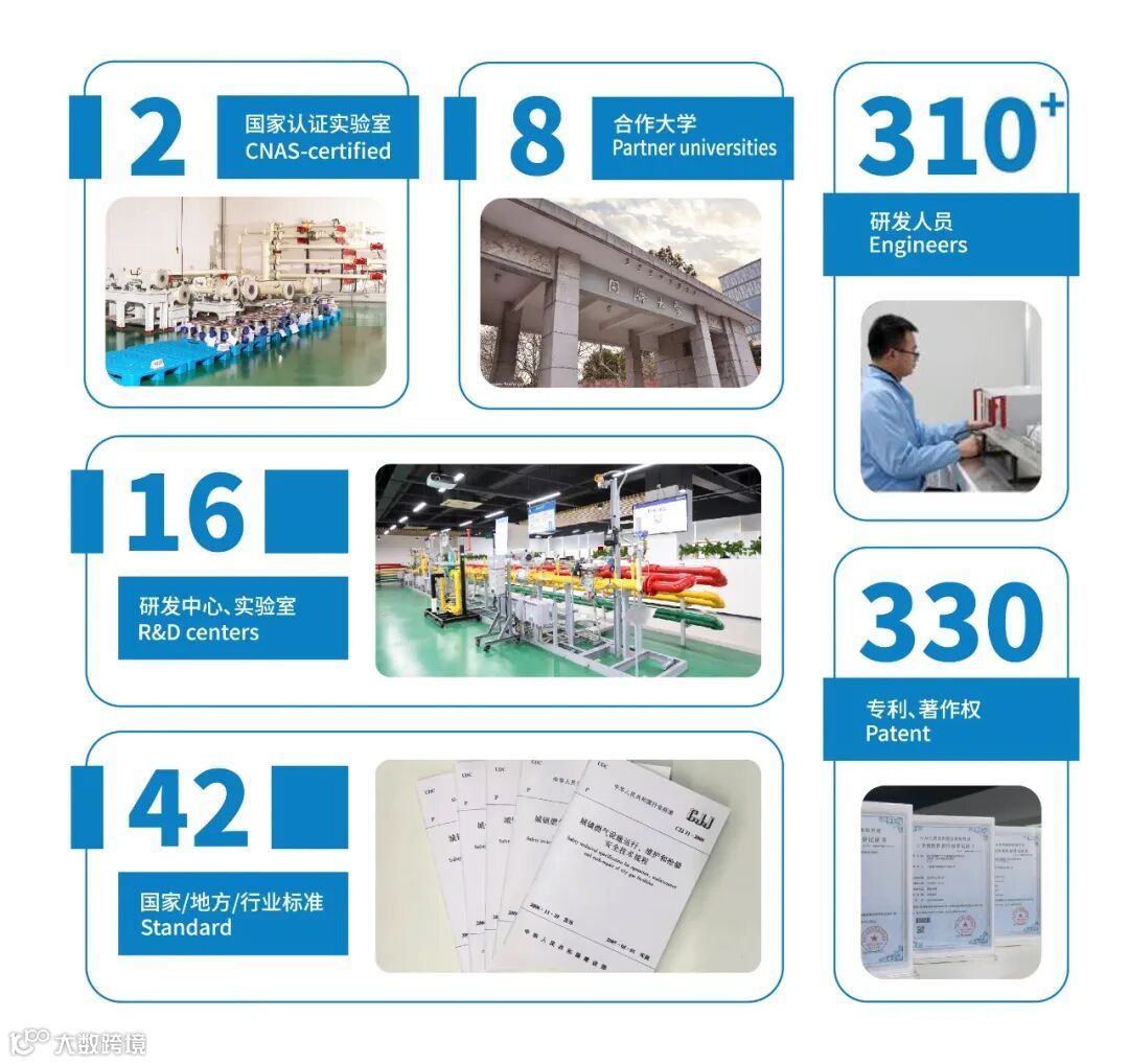 我们拥有 2 个国家 CNAS 认证实验室, 16 个研发中心/实验室,300+科研人员 ,占比近 50%。我们主编、参编了 42 项国家、地方标准,拥有330 项专利和著作权。