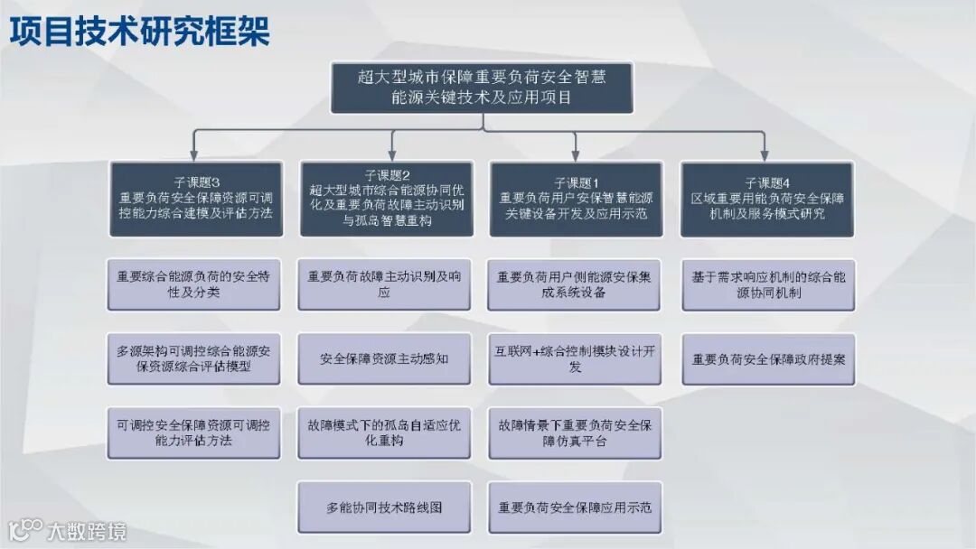上海市科委社发专项《超大型城市保障重要负荷安全的智慧能源关键技术及应用》立项于2018年7月,项目针对事故模式下集中式单一大电网弹性较低、易受气候条件影响、发生大面积停电事件影响范围广等安全隐患,突破传统不断强化单一能源网络安全保障能力建设的思路,构建用户参与、多能源互联互通互保的微能网重要负荷保障系统,通过“三精”(精准设计、精益管理、精心服务)的机制创新,强化城市能源系统事故模式下的“三自”(自预、自保、自愈)能力,建设超大型城市重要负荷的“自坚强”智慧能源安全保障系统。