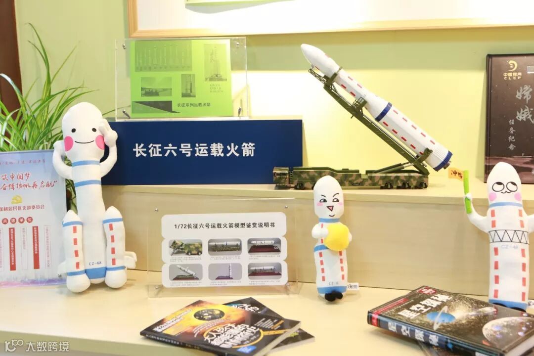 在航天科普展示区,你能看到1:180的长征五号运载火箭模型,你能看到1/72长征六号运载火箭模型,你还能看到精美的远征三号和嫦娥四号发射纪念邮票,还有可爱航天火箭公仔,这些都是由保利共建单位——“航天能源”赠送。
