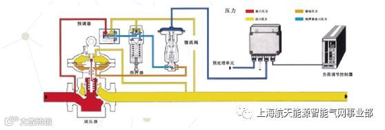 负荷调节控制器通过专有程序,精确控制预处理单元,输出0.2-1bar的仪表风,驱动微流阀。微流阀精准限制从指挥器进入调压器驱动腔的压力。从而远程精准控制调压器后压力。