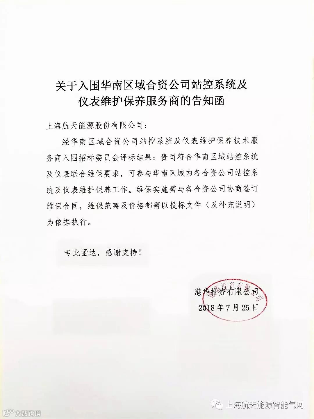 7月25日,港华投资有限公司传来入围喜讯,历经两个月的考察交流、招标、答辩,上海航天能源成功入围港华集团 “华南区域合资公司站控系统及仪表维护保养技术服务商”项目招标。