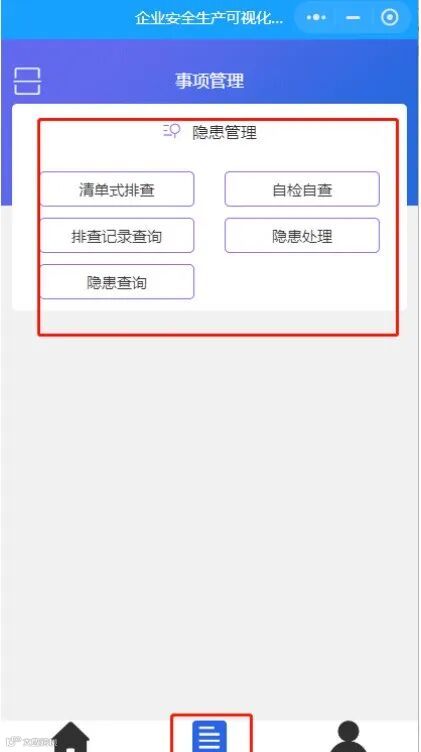 可调整的菜单包括:隐患管理、风险巡查、作业证、事故上报、设备设施