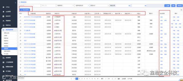 所有隐患排查治理记录线上存档,支持按隐患级别、隐患状态、排查日期等便捷搜索,便于安全管理人员重点追踪“未整改的隐患”,实时追踪隐患管理执行进度,支持隐患管理台账一键导出。