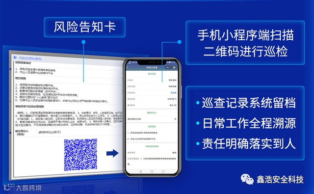 支持风险点二维码日常巡检:点击对应风险点数据,自动生成一张风险点告知卡,系统支持在线打印。