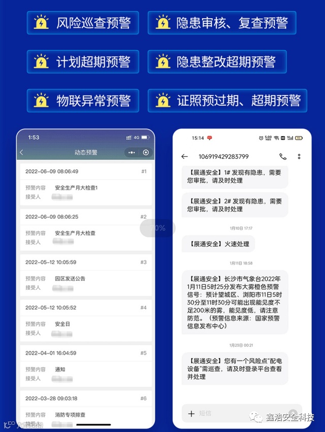 当触发规则时,可通过消息通知、短信提醒等方式,实时提醒相应负责人及时处理,实现早发现,早处理,有效防范化解事故风险。