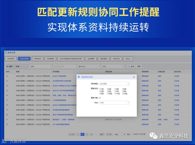 平台依据现行安全标准化的体系管理要求,编制了各类体系资料范本,企业可灵活生成企业自属的标准化体系资料;匹配动态更新规则,协同工作提醒功能,及时查缺补漏,避免形成标准化的创建与企业日常安全管理“两张皮”的现象。