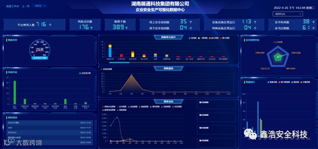平台充分整合各类安全数据,比如风险点、隐患、安全教育培训、设备设施、证书等各类数据,构建安全生产可视化数据中心,企业安全态势及工作进度一目了然;