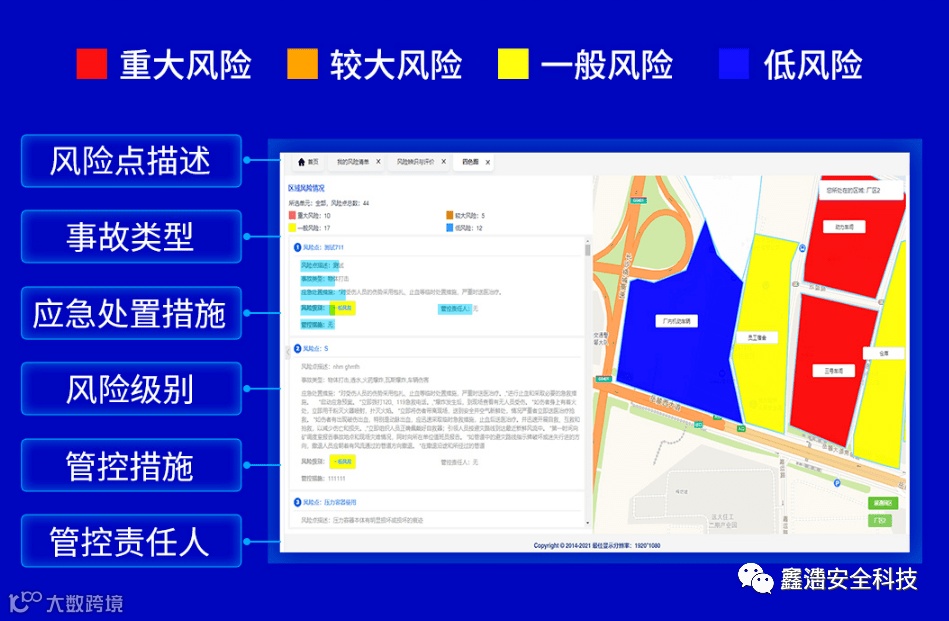 ❖ 构建企业动态风险四色分布图,实现风险辨识-评估-管控-巡查全过程管理,风险分级动态管控。
