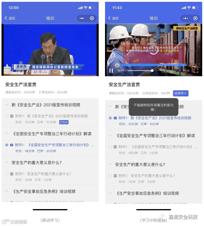 ❖员工可在学员端自主查看,“我的培训“、”我的考试”等任务,利用零碎时间自主开展课程学习,实时记录学习时长,智能“人脸识别验证”,防挂课、防拖动,支持断点续播。
