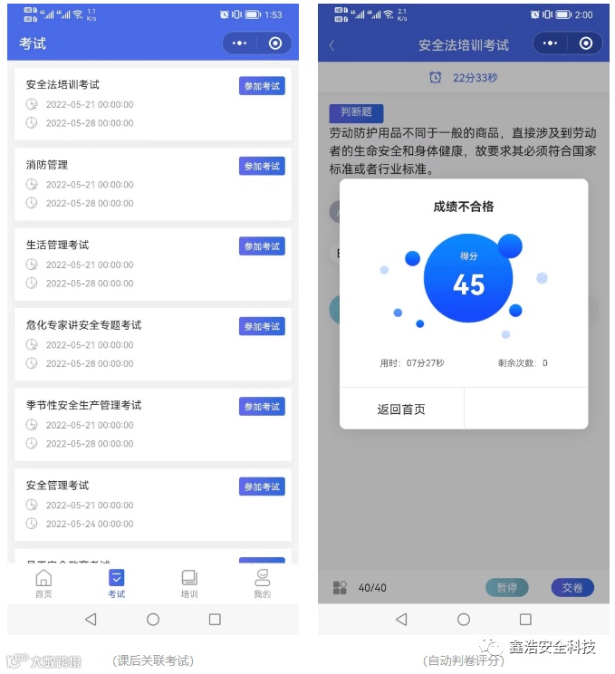 ❖结课后可关联相关考试,系统会自动判定归档,交卷直接查看考试结果和答案解析。