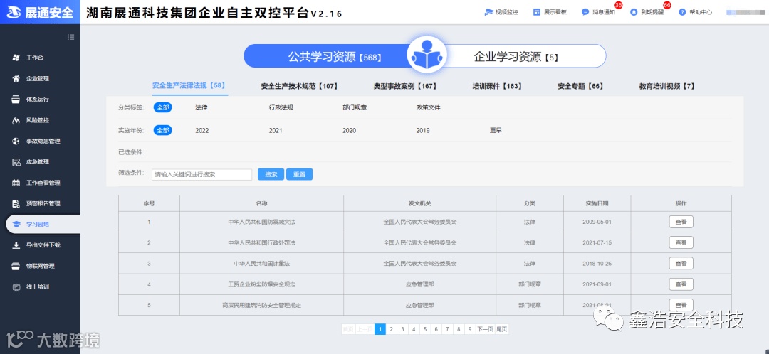 平台配置了丰富安全知识库,全面涵盖安全生产法律法规、安全生产技术规范,典型事故案例、安全教育、视频培训等内容,并定期更新,为企业开展教育培训、员工自主学习提供了便捷途径,切实提升全员安全专业知识与技能水平。