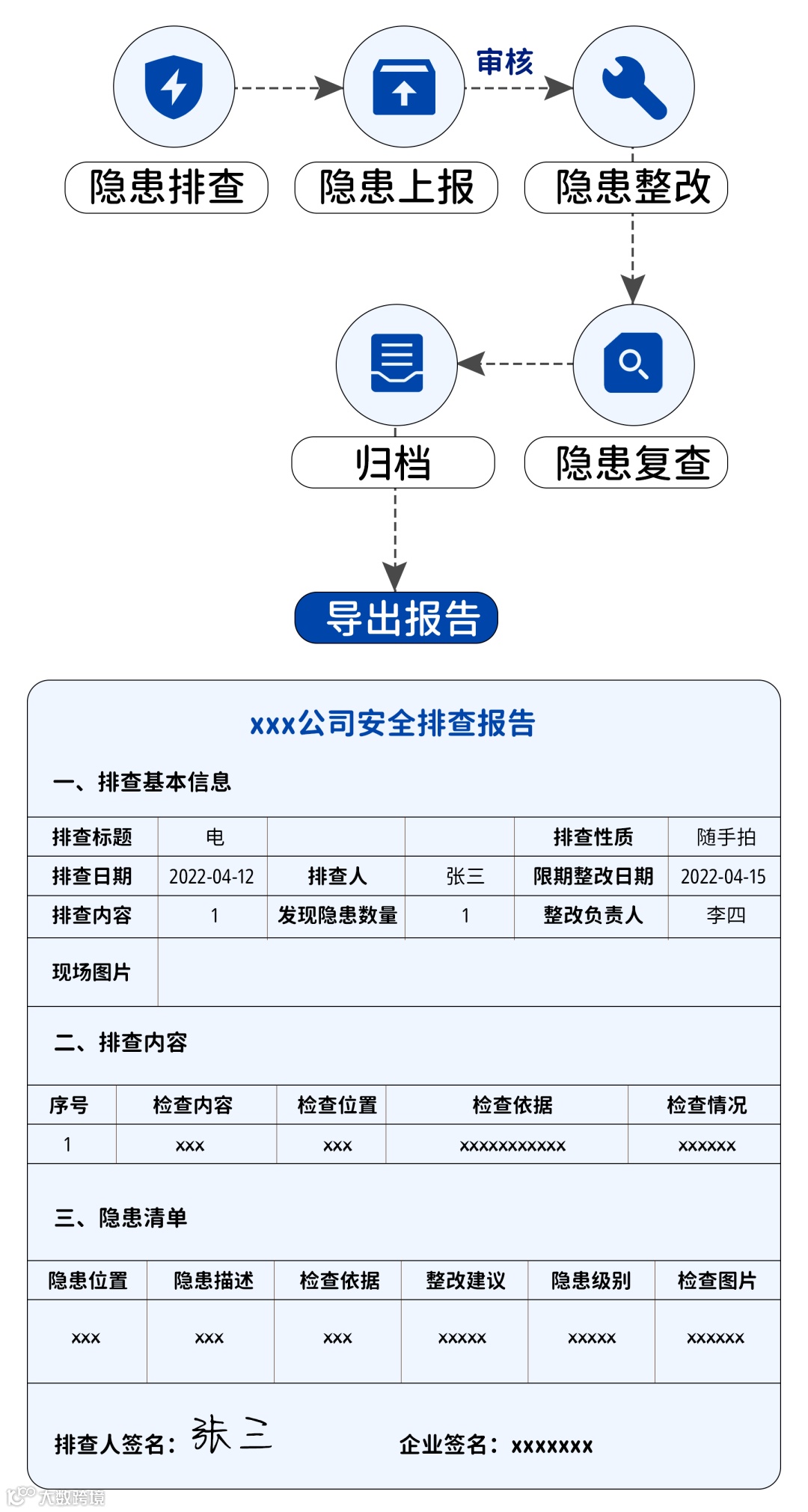 隐患排查、上报、整改、复查、销号