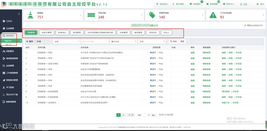针对企业内部专业力量不足、专业知识匮乏等问题,平台按照标准化的体系建设及管理要求,编制了目标职责、制度化管理、教育培训、安全风险管理及隐患排查治理、事故管理、现场作业、应急管理等相关体系资料模板,企业可以借助系统提供的行业模板,灵活生成企业自属的标准化体系资料。