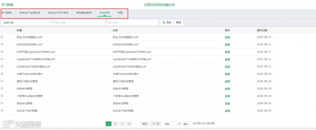 该模块包含安全生产法律法规、安全生产技术规范、典型事故案例、安全知识库4个维度提供的培训资料,并定期更新。企业可根据需要自主下载资料,也可上传本单位学习资料进行教育培训,深化全员大学习,形成独特的企业安全文化。