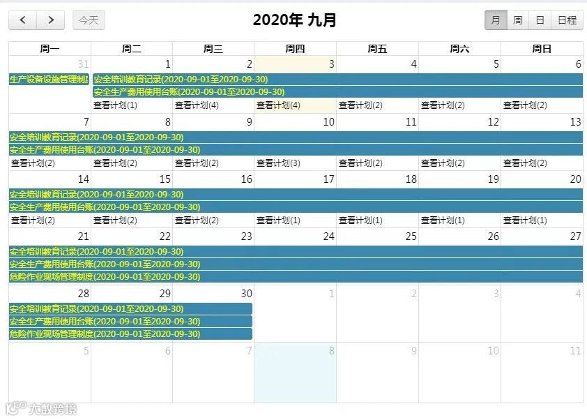 可根据需要及规则设定,按月建立安全工作计划,为安全管理提供便捷的管理工具。可视化的管理,可随时查看工作进度及执行情况,便于工作进度整体把控,有效保障企业运营管理规范化及高效协同运作,提升管理效率和质量。
