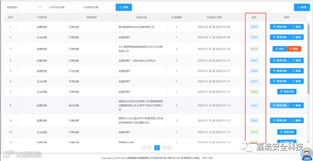 监管部门可实时下发检查计划,要求辖区企业按照规定时间、特定的检查表完成指定的安全检查任务,实时更新跟进辖区企业对检查计划的执行情况和隐患治理情况。