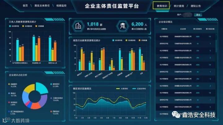该平台集数据分析、落实主体责任、视频监控、教育培训、统计查询、通知公告于一体,动态把控企业落实安全生产主体责任情况,打通政府部门与企业之间的信息壁垒,让政府部门对安全生产工作掌控全局,心中有数。