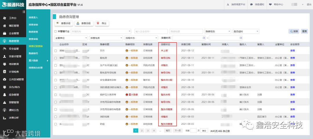 通过排查-整改-复查-归档等一系列动作,形成事故隐患闭环链,实现隐患管理全流程追踪;对未按要求整改隐患的企业,进行消息推送,闭环整改责任到人,降低生产安全事故的发生概率。